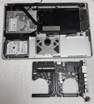 姉からMac Bookの修理を頼まれた。起動すると起動音もしない、液晶も真っ暗のままだ。裏蓋を外して、電源を入れるとファンが回っていた。色々調べているうちに、PRAMをリセットし起動させ、真っ暗な液晶にライトをあてると液晶の中に薄っすらとディスクトップが起動しているのが見えた。壊れていたのは、液晶のバックライトのようである。