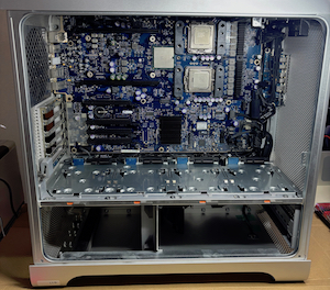 ビデオボードは2枚搭載されていたが、MacProを起動すると消費電力が大きく170W近くまで消費していた。
