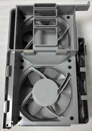 電源の後ろのファンは取り外さないと掃除できない。ファンの取り付けネジはシリコーン削減騒音振動仕様で経年劣化していて、引っ張るとちぎれてしまった。