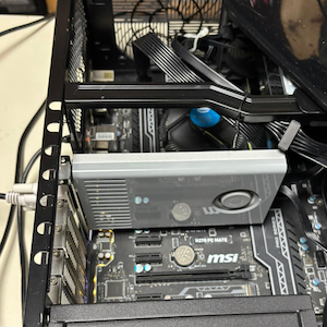 MacProに搭載したら、電源投入とともに、画面が乱れ、その後起動した。