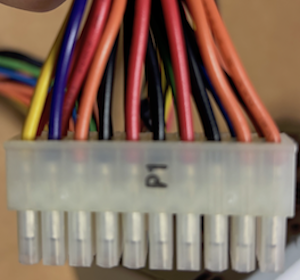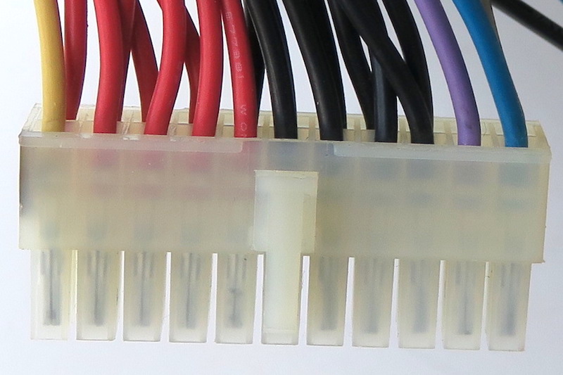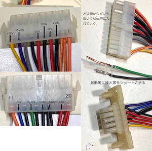 手元にあった、24ピンの電源を20ピンのマザボードに接続するための変換ケーブルを利用する