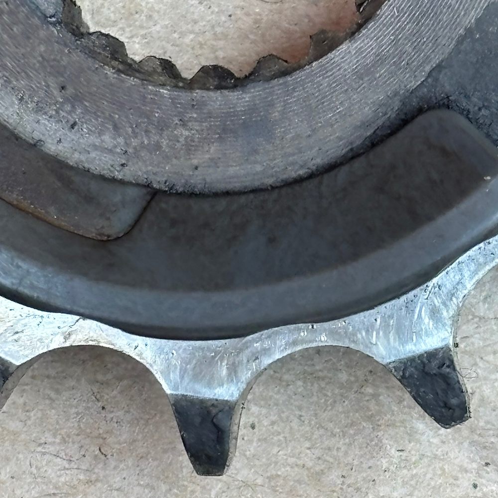 上が古いスプロケット、下が新品、見た感じ交換しなくても使えそうに思える