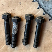 タイヤを外し、リアのスプロケットを外し、スタッドボルトを確認すると二本のネジ山が壊れていた。前回これで苦労したので、予備を持っていたので交換することにした。