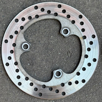 かなりすり減ったフロントブレーキディスクの交換(29,538km使用)。