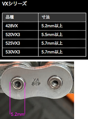 428サイズ対応とされていたが、付属のパーツでは428チェーンは
