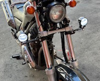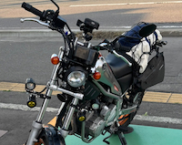 時々パッシングされるので今回はなるべく下げてみたがいまいち。次回はフロントフォークシリンダーに付けられるステーを購入しもっと下に付けてみたいと思う。