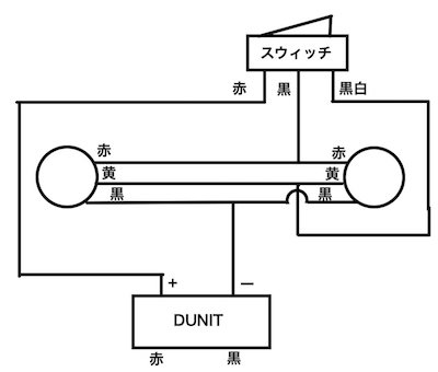 配線図、3芯タイプのフォグランプ、白と黄色を切り替える