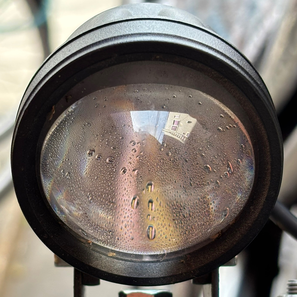 レビューにも書かれていたが、ヘッドライトが暗く感じるほど明るい。レンズは球形を上から潰した感じ。なので、前に使っていたフォグランプとは照らし方がかなり違う。黄色も良好だった。