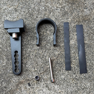 使用しているステーは、マウント部のサイズが Φ33-Φ38 と幅があるので、Φ35 のフロントフォークとマウント部の間にゴムを入れて固定します。