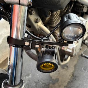 フォグランプX-STYLE バイクフォグランプ20Wを夜間併用。フォグランプX-STYLEはかなり明るくヘッドライトがいらないぐらい。