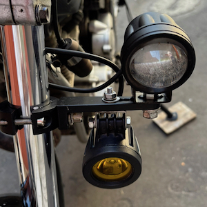 【Meliore 汎用 LED 小型 スポット ライト 2個 セット 12V 24V バイク 10W ON OFFスイッチ 付き CREE 丸型 ヘッドライト フォグランプ ワークライト 作業灯 防水 イエロー 黄、アマゾンで購入¥2,580 (2023/06/18)】を購入し1灯のみ付けた。