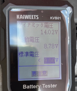 充電後は12.8v以上が正常