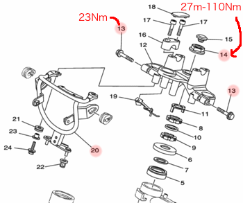 結局ステアリングステムナット(1番上の図14)を緩めることで、フロントフォークが外れた。
