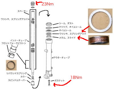 フロントフォークオイル交換と、スプリングの交換を行う予定。