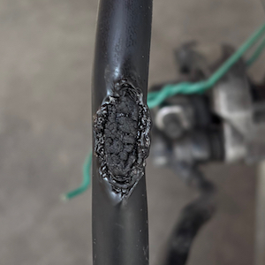 整備中、新たにクラッチレバーに取り付けられていた、スイッチが断線していたのを発見。