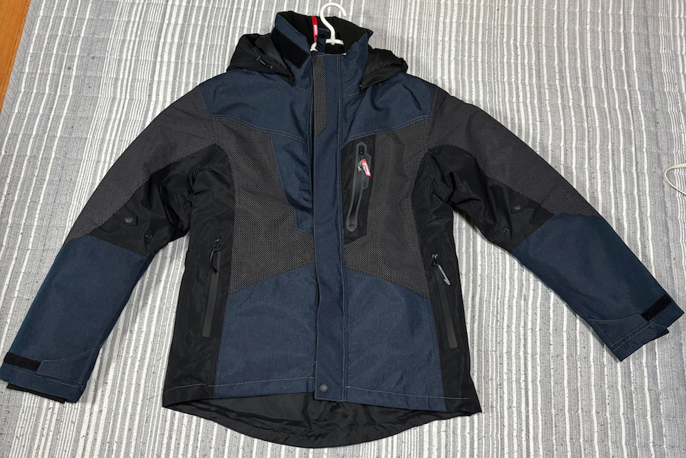 新型は、ファスナーが二重になり、合わせ部分はベリクロになった。袖の手首の部分も二重になった。首元にネックガードみたいなのが付いてる。胴部分が長めにできてる。