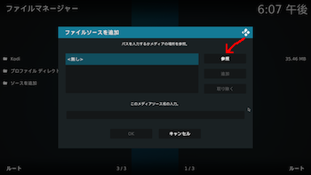 Kodiを起動し、左のメニュー「スイッチ・設定・検索」ボタンから