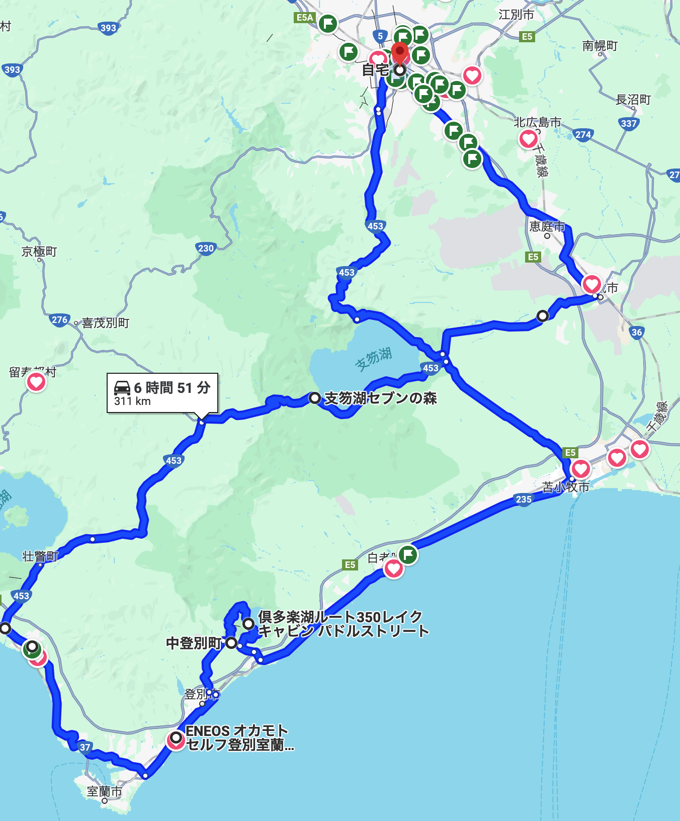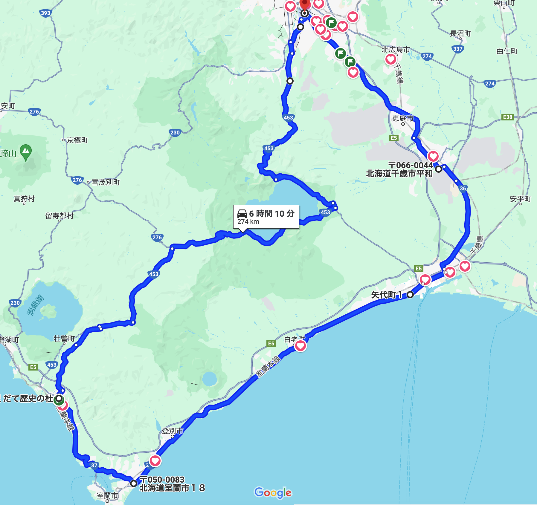 2013年の6月に渡島半島(おしまはんとう)を回るツーリングに行き、豊浦あたりからの激しくガスで、渡島半島の景色は何も見れなかった。北海道駒ヶ岳も恵山(今年)もなにも見えなかったので、今年再挑戦、ルートは前回とほぼ同じ、昨年はナビが勝手に最短ルートに変更したため、行きも帰りもR230を走った。今回も、伊達からの帰路、支笏湖を回るルートを選んだのに、再び、R230を走るルートに変更され、途中で気づきR453を走るルートに戻した。