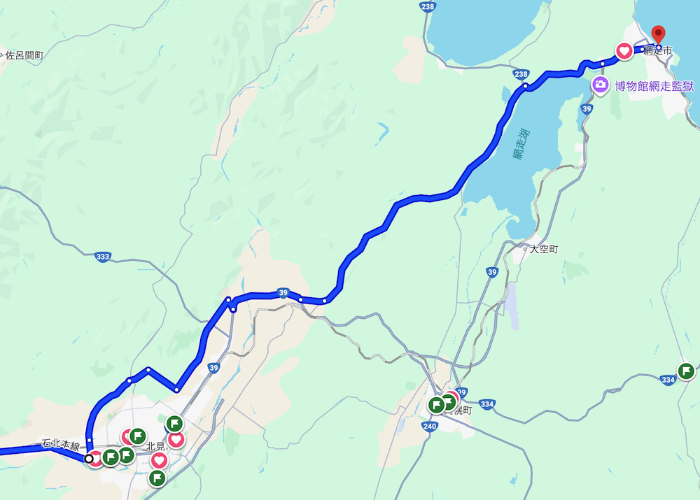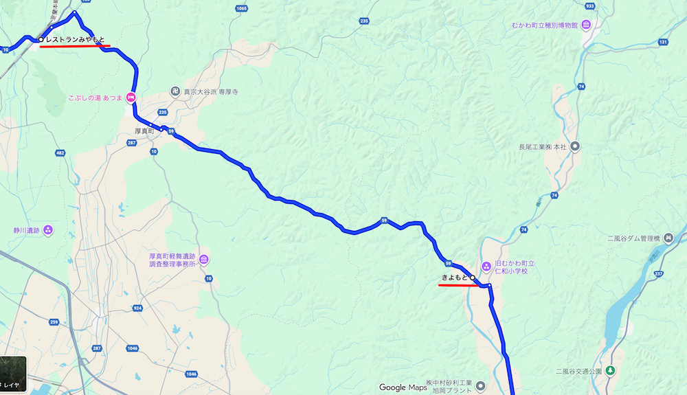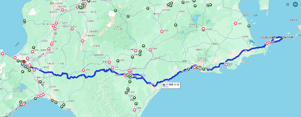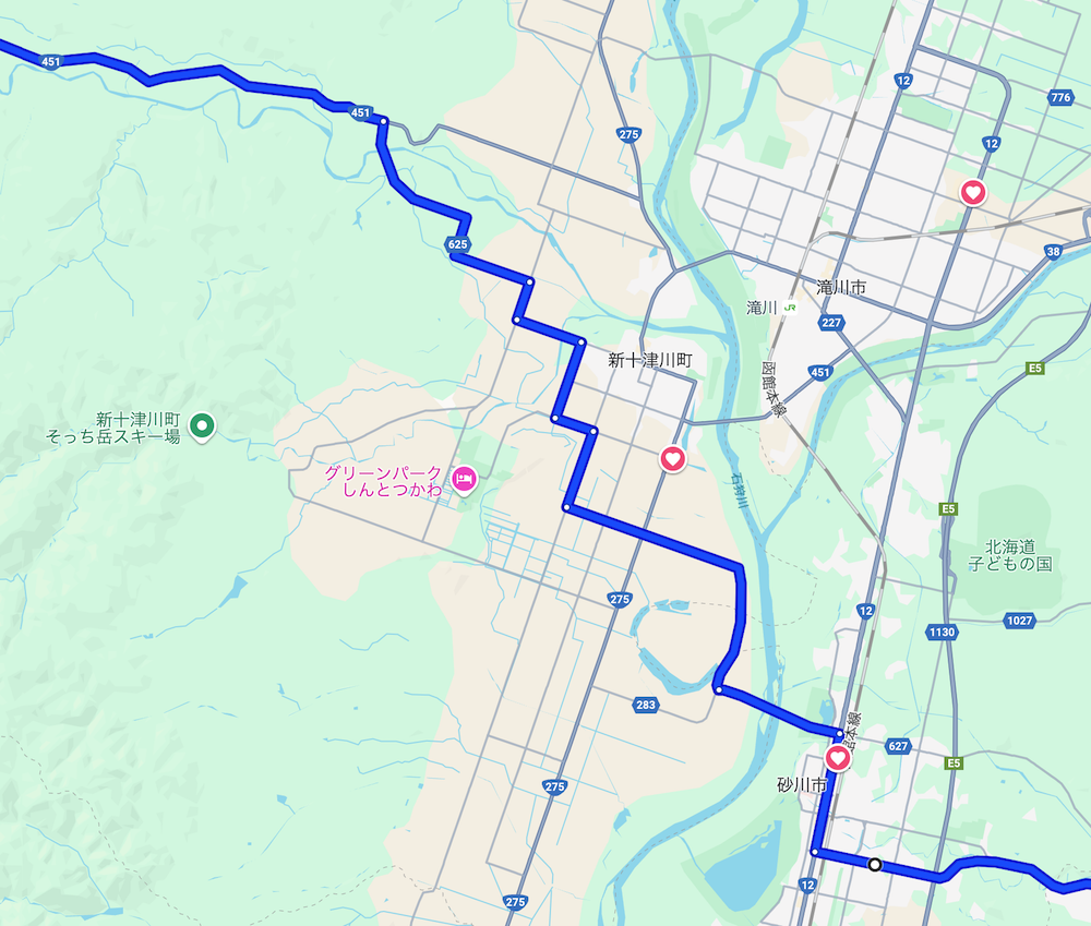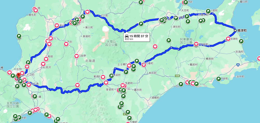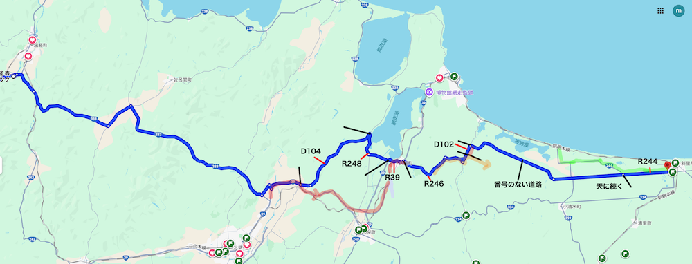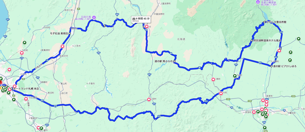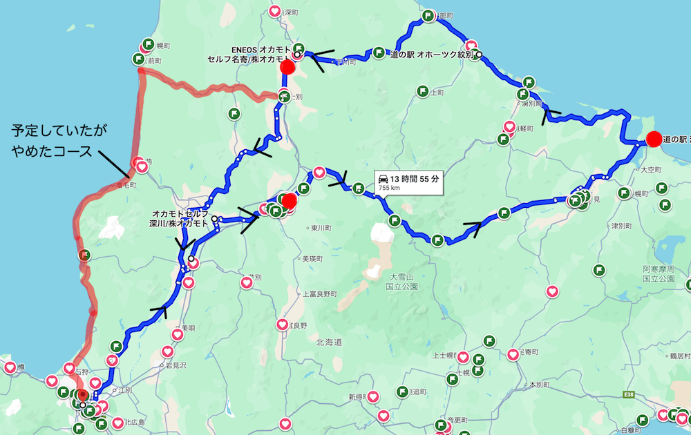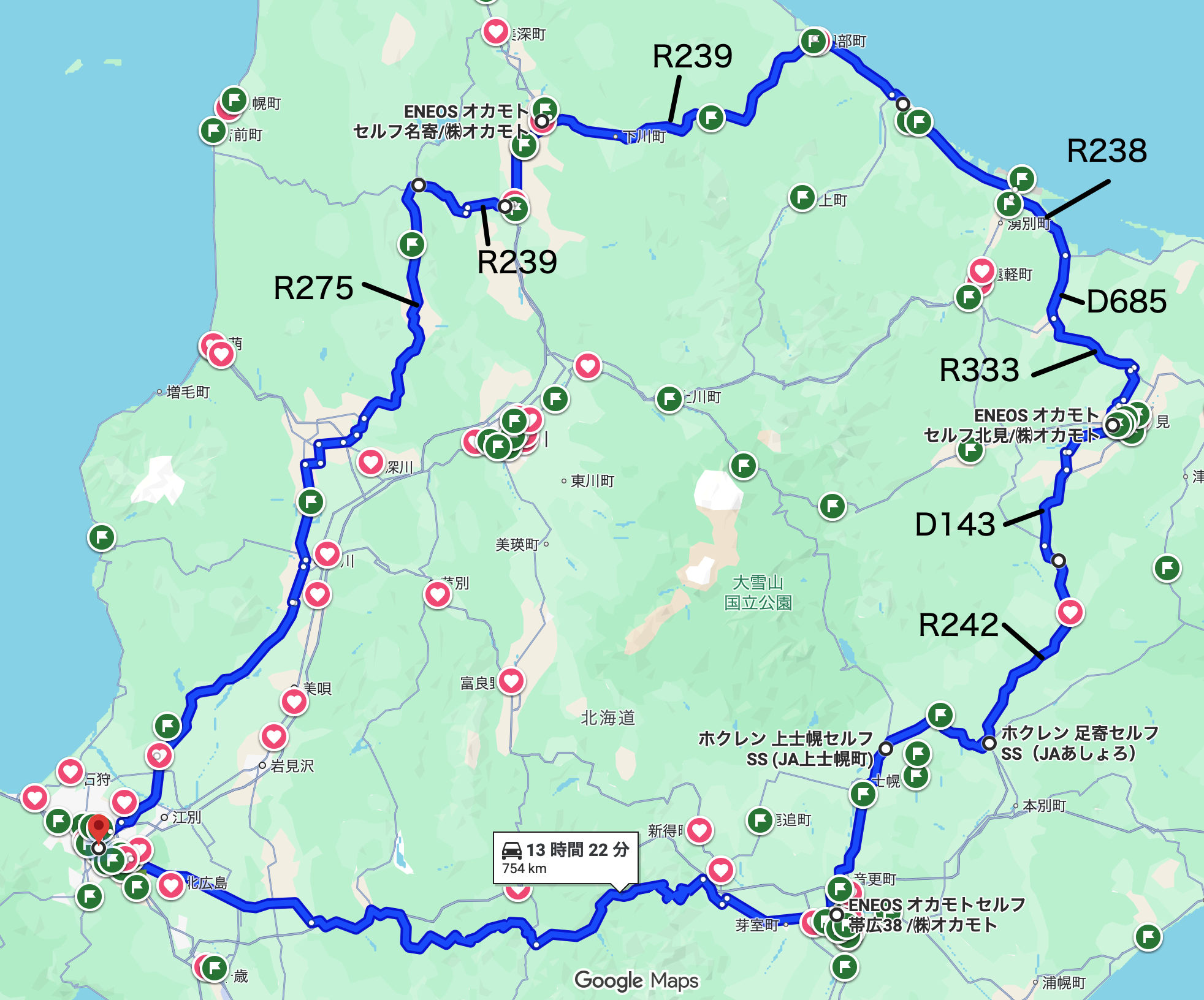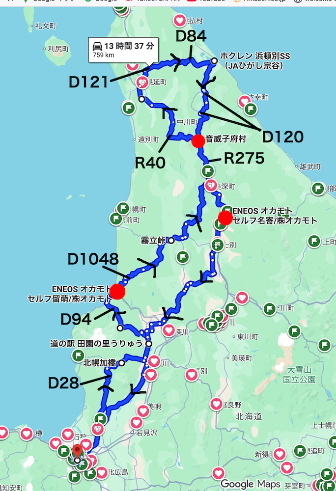 札幌--羽幌--遠別から--DD119--R40--R275--DD12---枝幸---紋別---滝上---上川---旭川---滝川R12---札幌