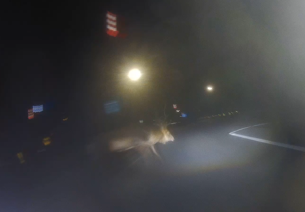 衝突したのも、その後のことも一切記憶がない。誰かが起こしてくれて、救急車を呼んで、バイクを脇道に移動してくれた。さらに飛び散った物も集めてくれたらしい。記憶があるのは脇道でボーゼンと立っていた事と、救急車がいて、周りにヤマトのトラックとドライバーがいて、車が3台ぐらい止まっていた事。救急車に乗ったことも、搬送されてる時の記憶も無い。次に記憶があるのはベットの上で服を脱がされ、CT検査、その後、右目の上を縫われている記憶がある。それから1週間入院。怪我は肋骨3本と右目の辺りの骨折、頬の辺りの骨にヒビがはいっているとのことだった。当初右目は腫れていて開かなかった。搬送されたのは旭川赤十字病院だった。17日、18日、19日、20日と集中治療室にいたが、20日の目の検査とともに一般病棟に移動した。入院中、旭川警察東署から何度も電話がある。電話ができるようになり、電話した結果。鹿と衝突した痕跡がないので、自損事故扱いとなると言っていた。現場検証した時バイクを見てドラレコが付いてるのが分からなかったらしい。気づいていればドラレコの録画が見れるか聞いてくるはずだ。
