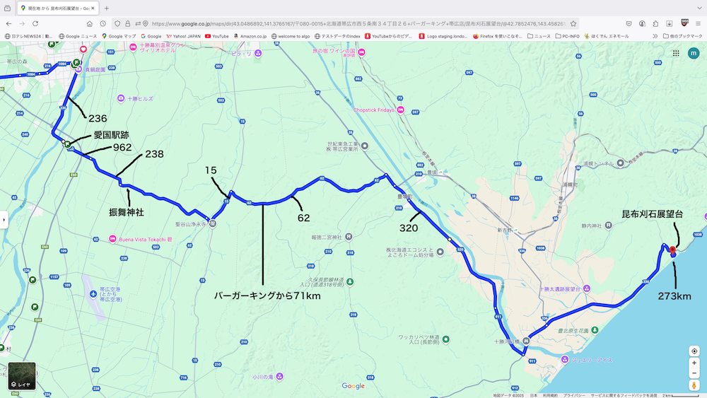 10時25分出発。今日は、札幌から北海道横断ルートをただ走るだけツーリング。目的地は標津でオホーツク海にぶつかるまで走る。ルートは毎度代わり映えしないR274、R241、R243、D13、R272で標津。2024年8月16日に走ったルートとほぼ同じ。R272はここが終点(起点は釧路町のR44から中標津方面に左折したところ)、目の前はオホーツク海。天気予報では暑くなると行っていたが、日勝峠の手前までは、雨が降りそうな天気だったが、峠を超えて清水あたりは天気が良く、暑かった。日高町の道の駅で食事をしようと思ったが、混んでいたので、上士幌の道の駅でハンバーガーを食べることにした。R274を清水、鹿追、士幌、上士幌に 14:55到着、上士幌で給油・昼食、昼間に移動する自衛隊の16式機動戦車4台と遭遇、重そうに見えるが、20トン超えの回送車が重機を運んでいるよりは軽いんだろうなどと想像してしまう。自衛隊で思い出すのは小学生の頃、札幌の中島公園でフレンドシップデーみたいなものが行われ、戦車の内部に入れたり、ライフルをさわれたり、地雷探知機で操作したり、1日遊べた記憶がある。
