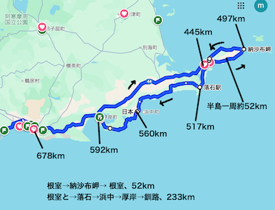 2023年7月2日と同じく、根室・納沙布岬を目指してひたすら走るツーリングを決行(最短ルートで473km)。今回は落石方面の道道を走る予定だったが、根室を出るのが遅かったので、来た道を引き返すことにした。今回も約950km走った。人もバイクも壊れそう。