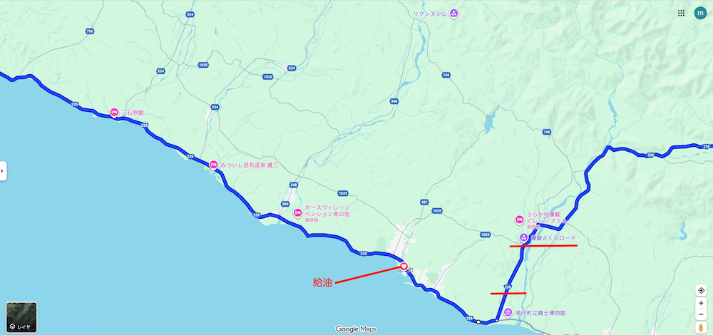 グローブもゴアテックスの物に交換。R236の静内で昼食。浦河で給油し、野塚トンネルに向かう、この辺りも馬のきゅう舎だらけ、子馬も多かった。野塚トンネルを超えて豊似へ。豊似からR236を走り前回来た昆布刈石を通ってD1038をR38に合流するまで走る。そしてR38を釧路目指す。すでに霧が発生していて寒い。今日は白糠からR392を本別に向かうルートを走る予定だった。この道は2024/07/17に走った道だ。なので釧路まで行かなくてもよかったのだが、音別のホクレンで給油しないで、白糠まで走ってしまった。ここにもスタンドはあるのだがセルフはない。結局釧路のオカモトまで行って給油することにした。途中、恋問の道の駅で、ラーメンを食べようと思っていたが、まだ17時なのに閉まっていた。残念。とりあえず給油して、また恋問の道の駅に戻って来ることにした。それから帰りのルートを決めることにした。で今日はR392を本別に向かうルートをやめて、R38を帯広に向かい、帯広のすき家で食事をすることにした。毎度のことなのだが、濃霧の中を走ると、ヘルメットのシールドが撥水しなくて、手動ワイパーで走ることになりうっとうしい。帯広はかなり暖かく、恋問の道の駅で着たダウンが暑い。ワークマンイージスを脱いで店の中で食事。帯広から日勝峠に向かう途中、爆音を響かせた二台の外車に抜かれた。一台はベンツだったがもう一台は不明。日勝峠の登りでこの二台に追いついてしまった。先頭の軽にひっかかかったようだ。二台は黄色線で強引に軽を抜いて行った。軽は八王子ナンバーだった。登坂車線のあるところで自分も軽を抜いて、しばらくするとの二台に追いついた。その前には軽が二台走っていた。この帯広ナンバーの外車はトンネルに入ると、わざと爆音を響かせ、遅い軽を煽っていた。軽も途中抜かせればいいのにかなりの走ったところで、耐えかねてパーキングに入った。夜のR274はこんな車が多すぎ。