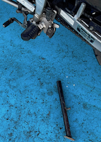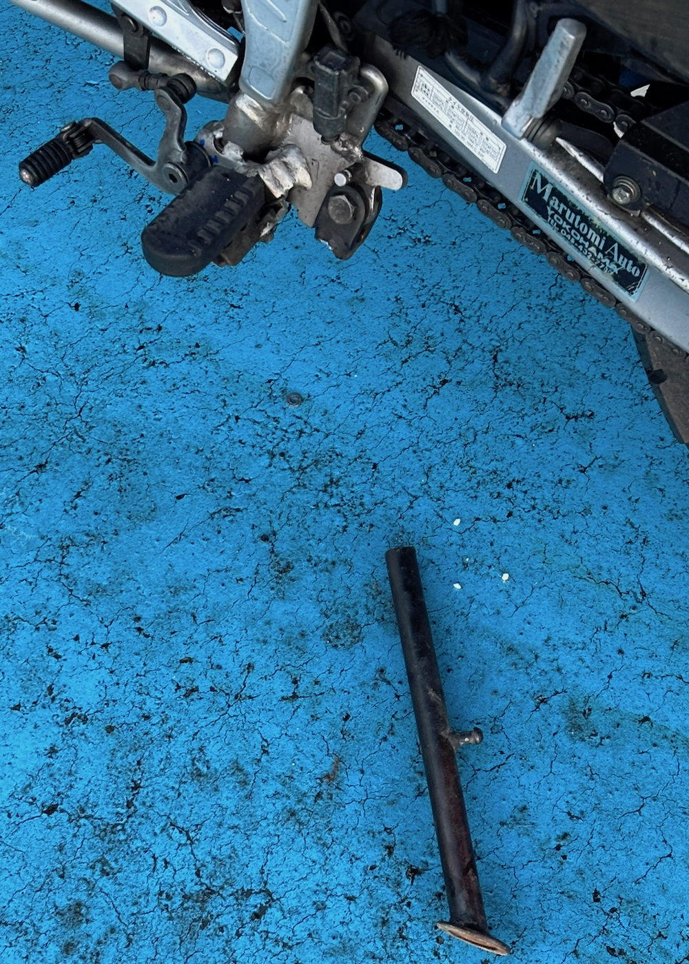 2025年5月5日、ツーリング中弟子屈で折れたサイドスタンド(拡大)