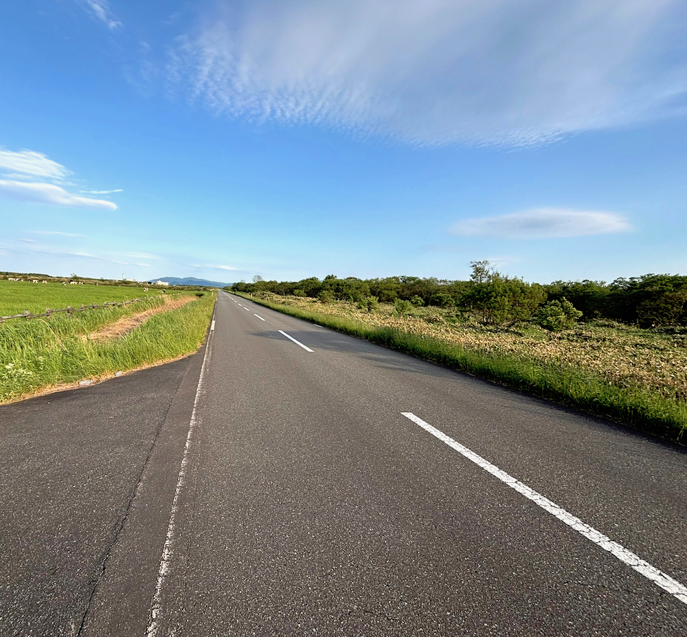 6月2日のコートと同じ感じだが、逆回り。今日のツーリングは去年走った猿払エサヌカ線を走り、道道1077を走り稚内に抜けるルートだ。計画では稚内からはオロロンライを走り留萌で給油する予定だったが、夕方18時頃には湯稚内を出ないと留萌に着けない。ダメな場合は、R40を走り名寄で給油するルート。