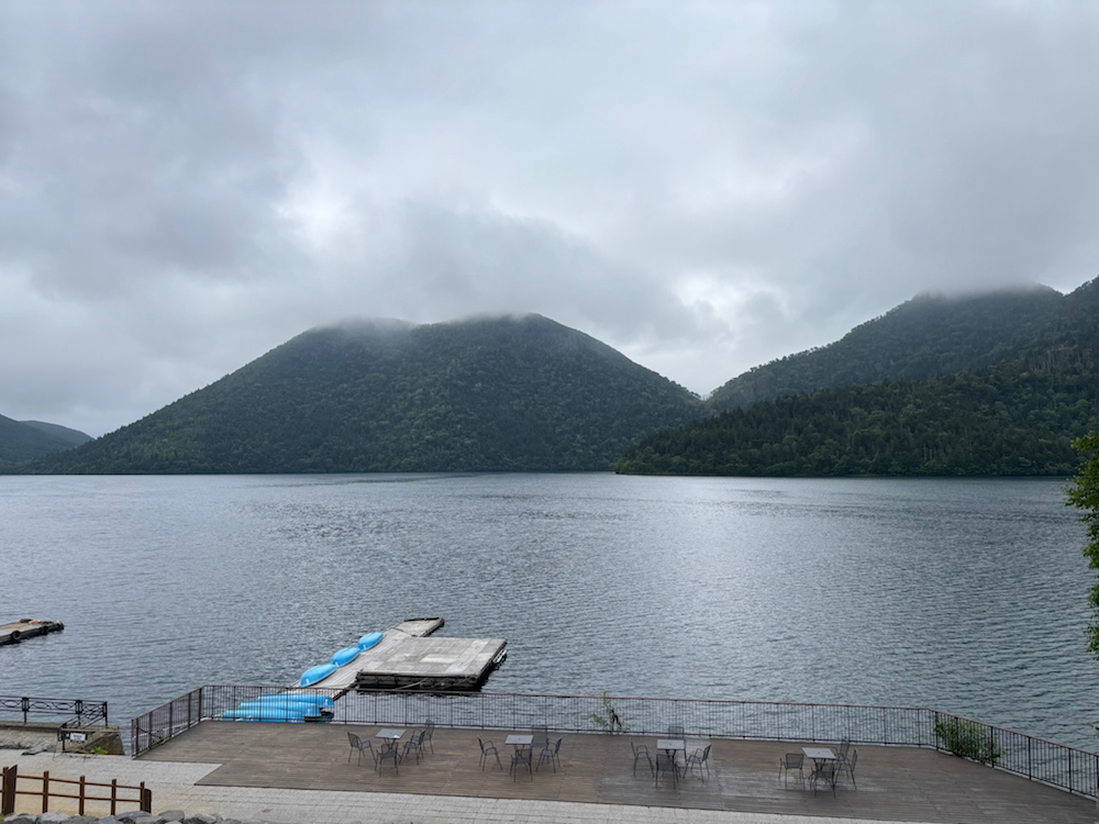 留寿都から喜茂別に向かう途中を右折しR276を支笏湖に向かう。途中で霧が出てきた。雨が降りそうなので、カッパの下を履いて走り始める。