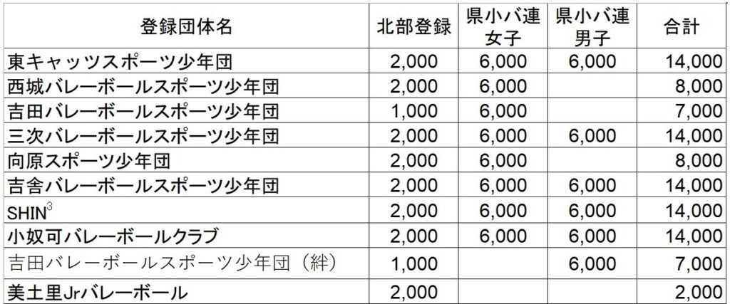 したがいまして、各団体の北部登録料と県小バ連のチーム登録料を集めることになります。